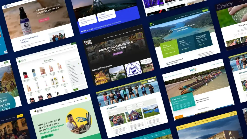 We build and maintain websites with businesses, tourism operators and education organisations around the region. We work with teams in Mapua, Upper Moutere, Motueka and Kaiteriteri from our Nelson base.