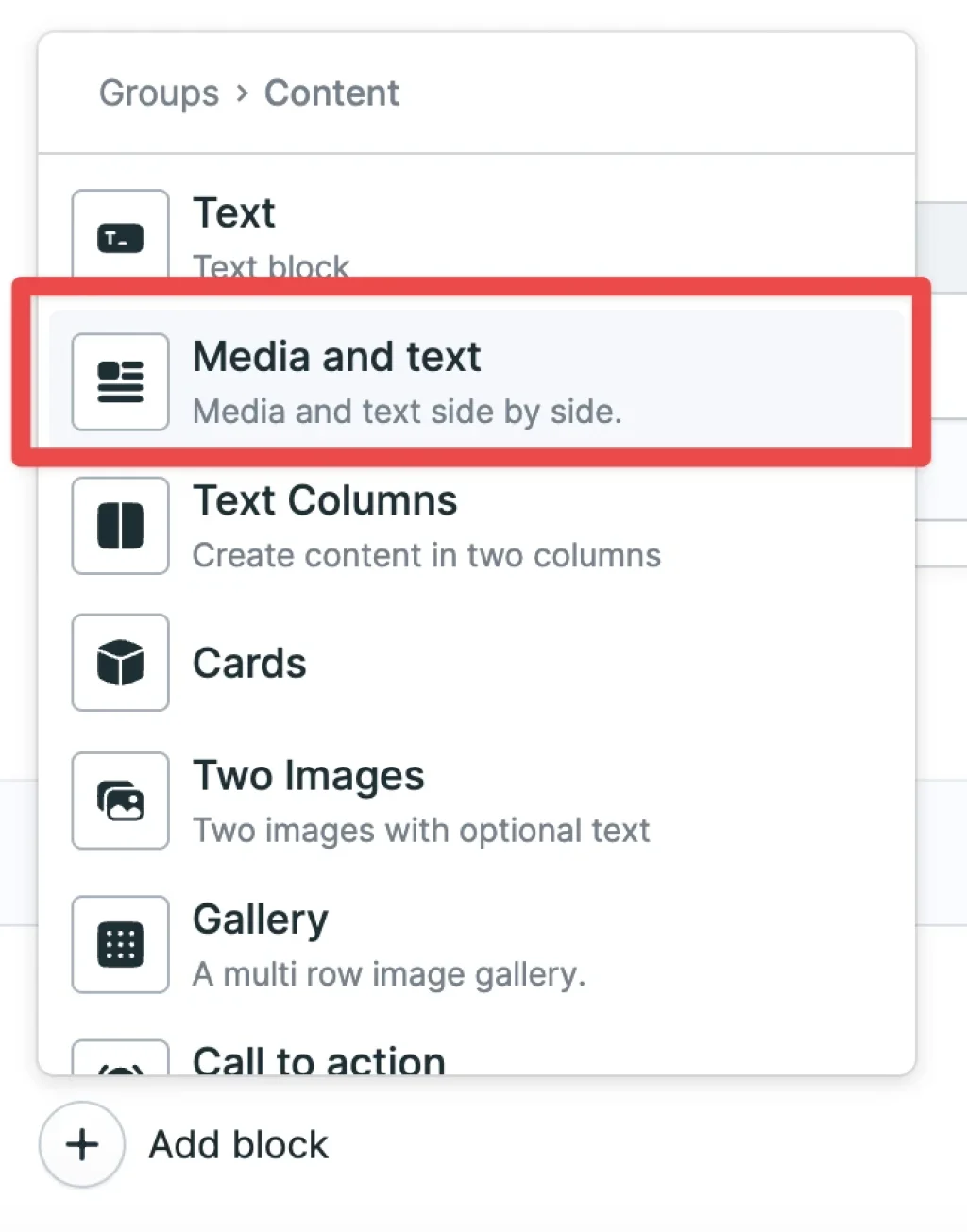 When we create your Statamic site we'll build a suite of content blocks you can easily use to build pages and other content on the site.
