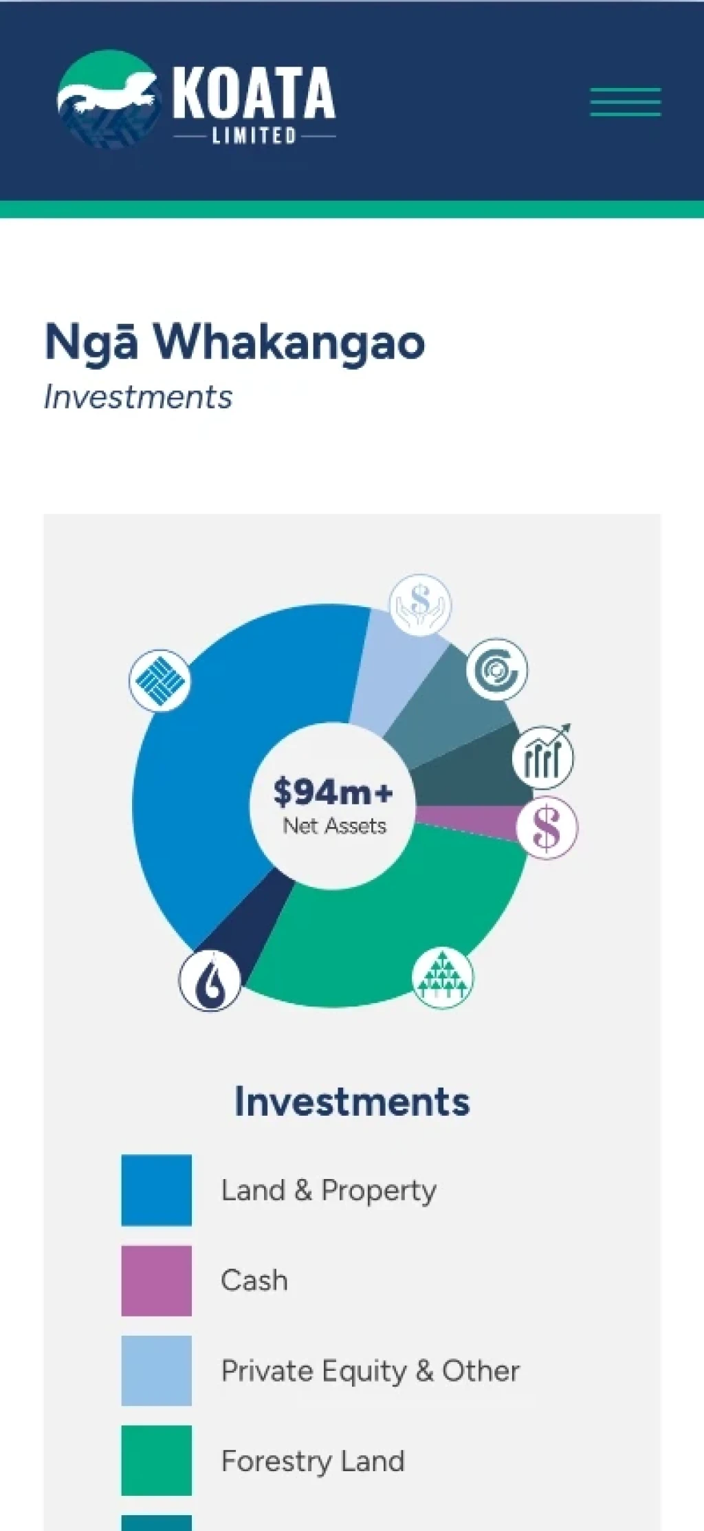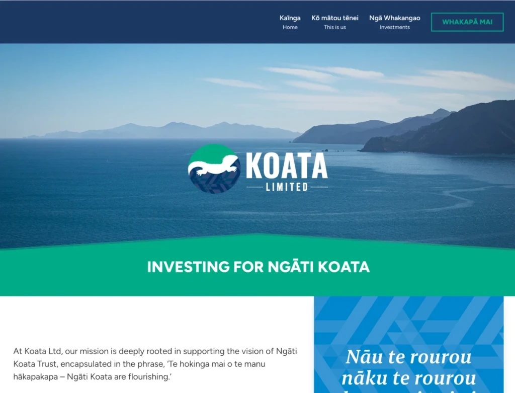 Koata limited is the entity that manages investments for the Ngāti Koata trust. They needed a simple website to show what they do and who is involved.