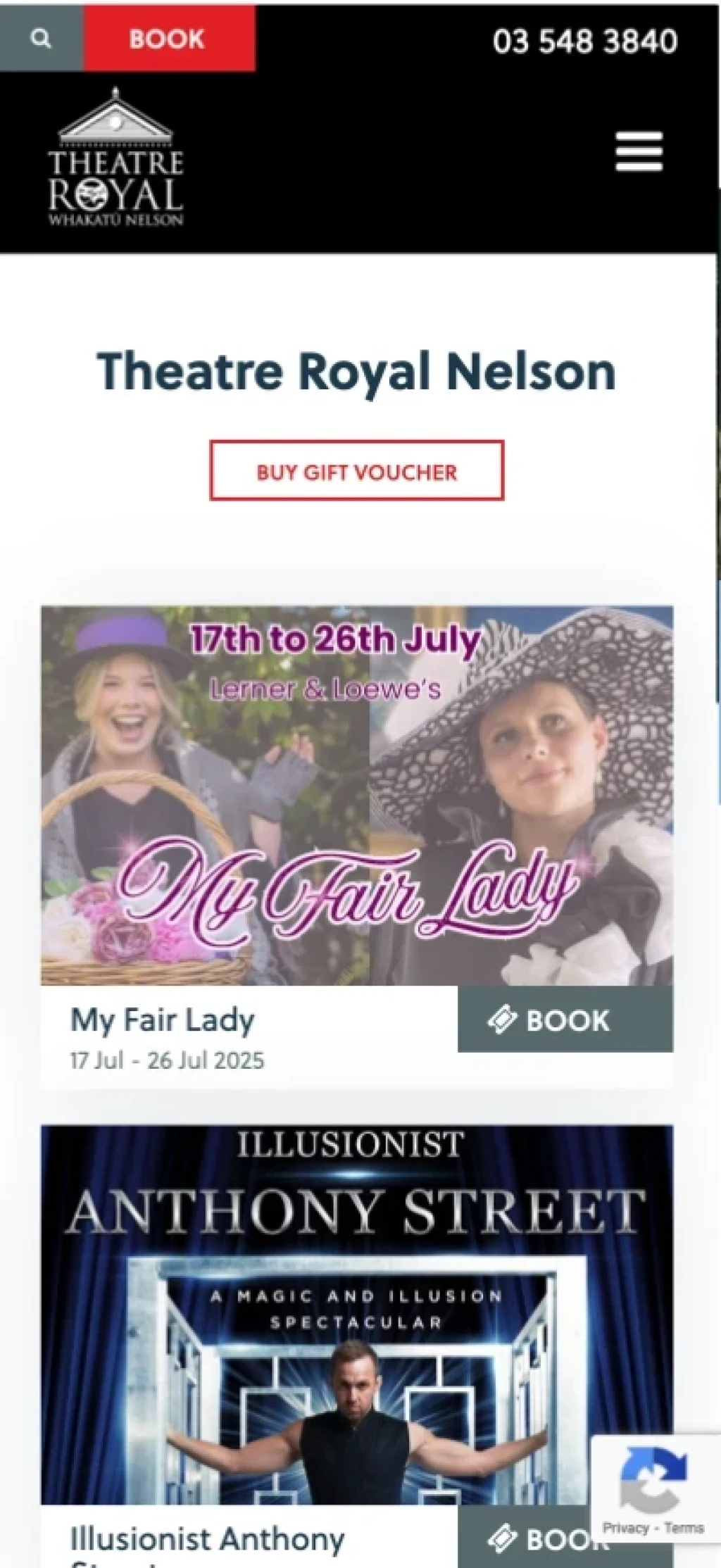 We developed a custom show display system that lists all upcoming shows, archives older ones and displays all the information the public need to explore what's on offer and easily book tickets.